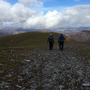 We returned to the bealach between Carn nan Gabhar and Braigh Coire Chruinn-bhalgain to make our descent south off the hill. This section is very eroded now, and there’s no let-up from the boggy terrain until you reach a new path on the eastern slopes of Beinn Bheag. Once on this fab new pat,h it was fast and easy walking for 6km back to the start.