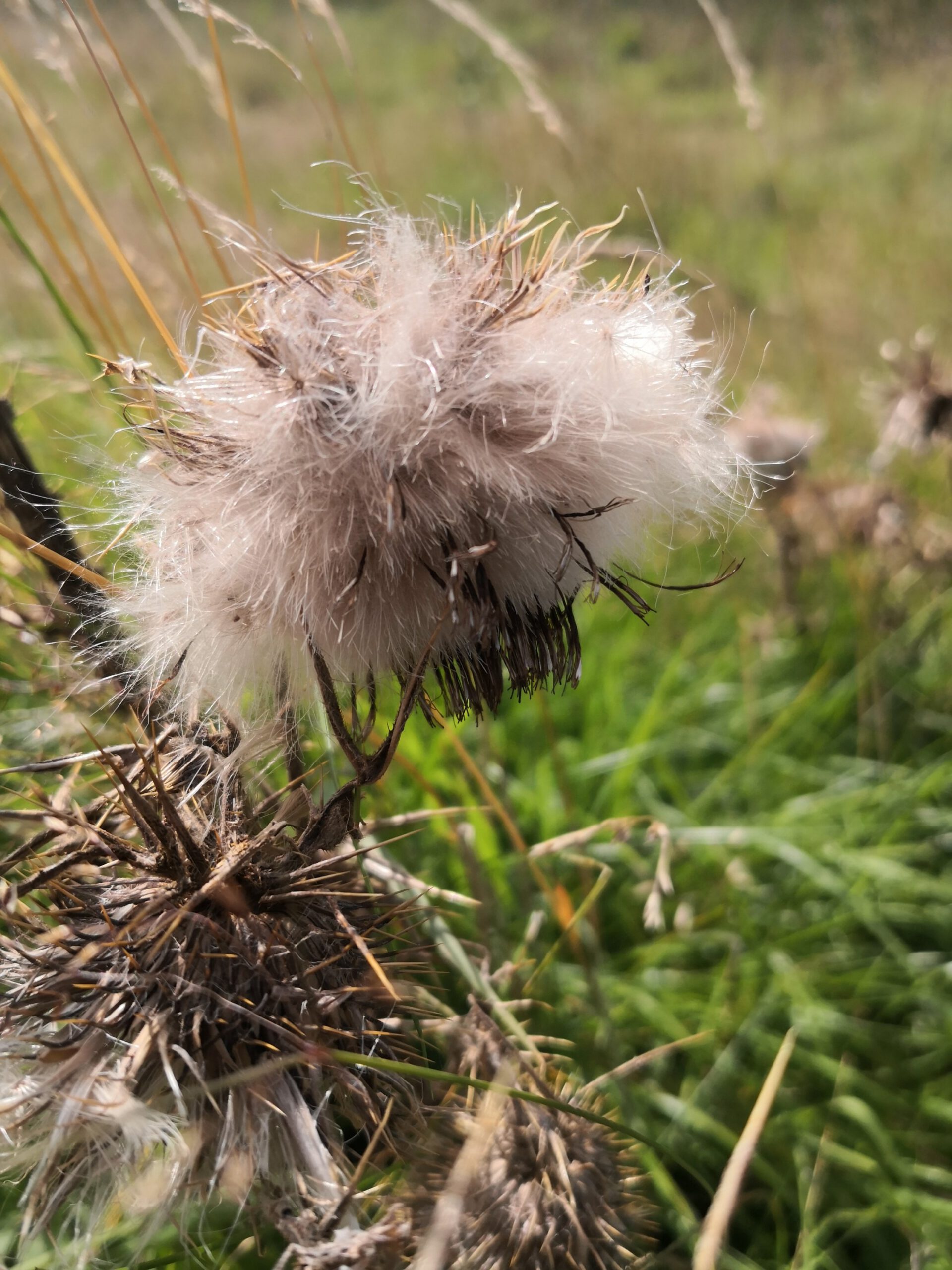 August is the season for collecting thistle seed heads to use as an excellent tinder for firemaking. The flowers die back and the seed heads burst out in warm weather, then disperse in the wind. There are lots of types of thistle in Britain, like Marsh Thistle and Creeping Thistle, but one of the best to use as a tinder, because the seed heads are so full and abundant, is the Spear Thistle, Cirsium vulgar.