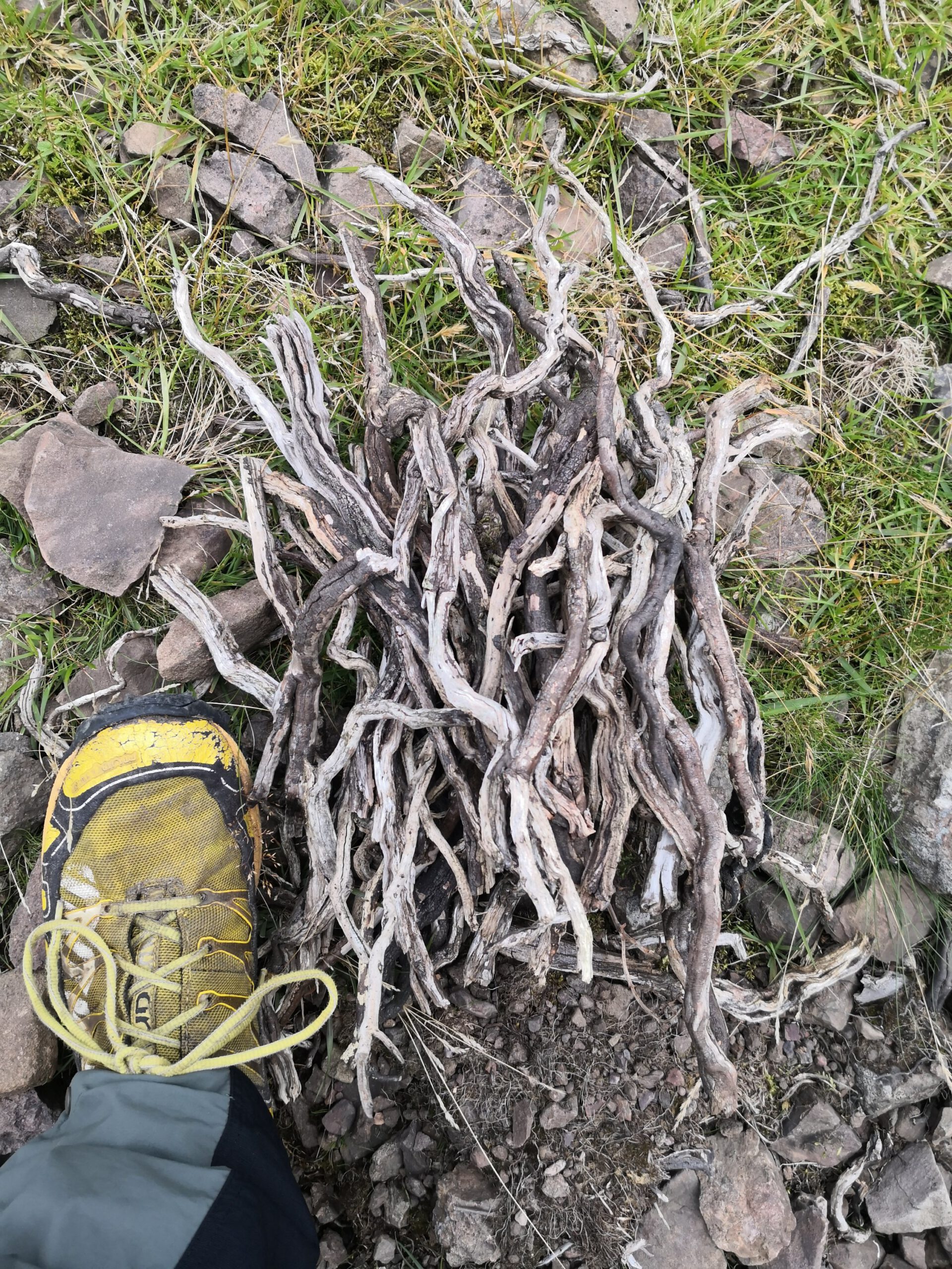 Then I looked for thicker bits of heather and collected a bundle, tied together with cordage made from soft rushes.