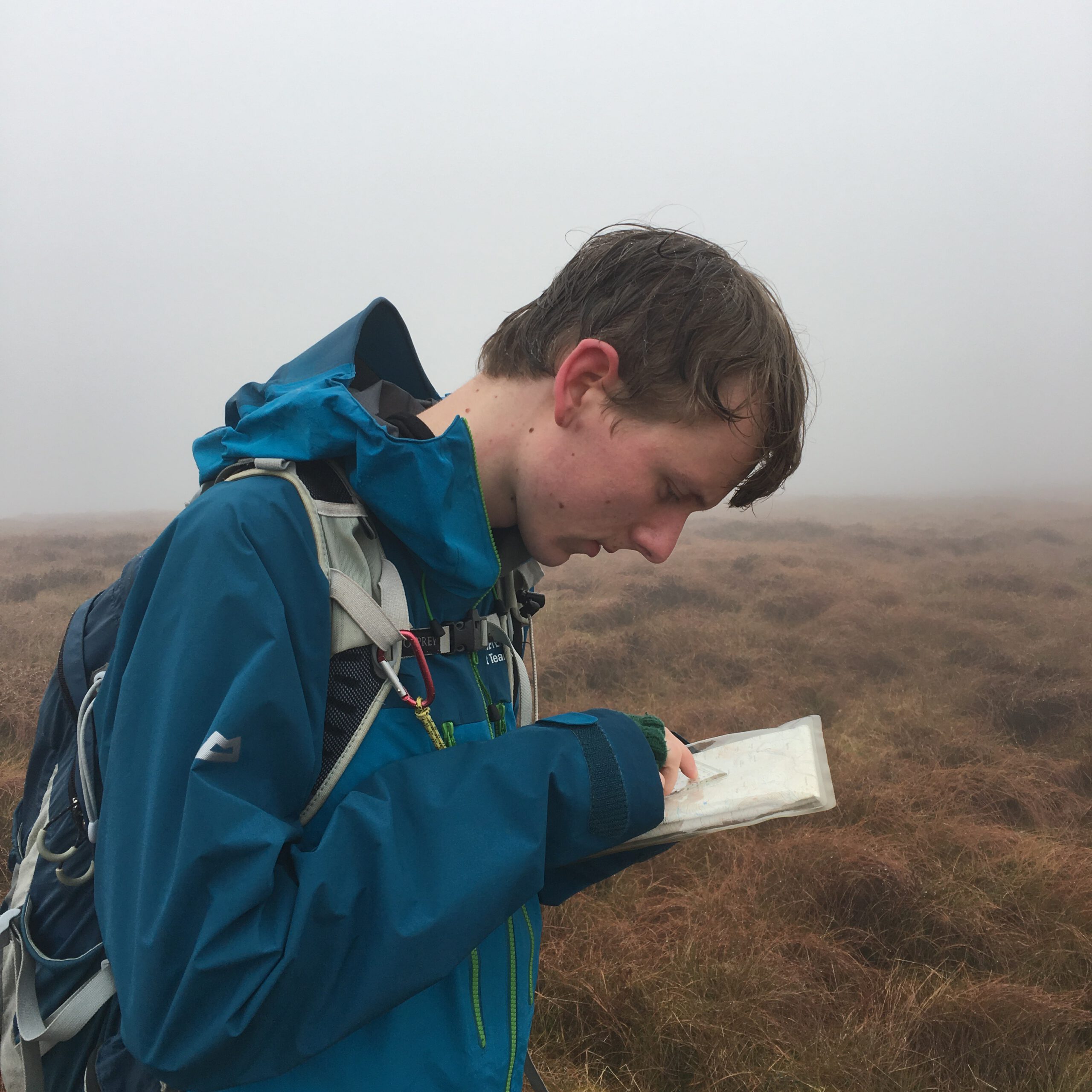This Saturday morning, it was drizzly, and we entered the gloom and mist at around 150m. We had about 20m visibility for the next 4 hours. Magnus is preparing for is Hill and Moorland Award, and the hills offered a brilliant training ground for practicing navigation. He took the lead and used compass bearings, pacing, and timing to go from one small feature to the next, growing in confidence with every leg. I love that such simple technology, a compass, together with pacing, is so accurate and effective. One of Magni’s most impressive legs was finding a small ring contour just 5m higher than the surrounding Moorland, over a 400m leg in visibility that was about 15m.