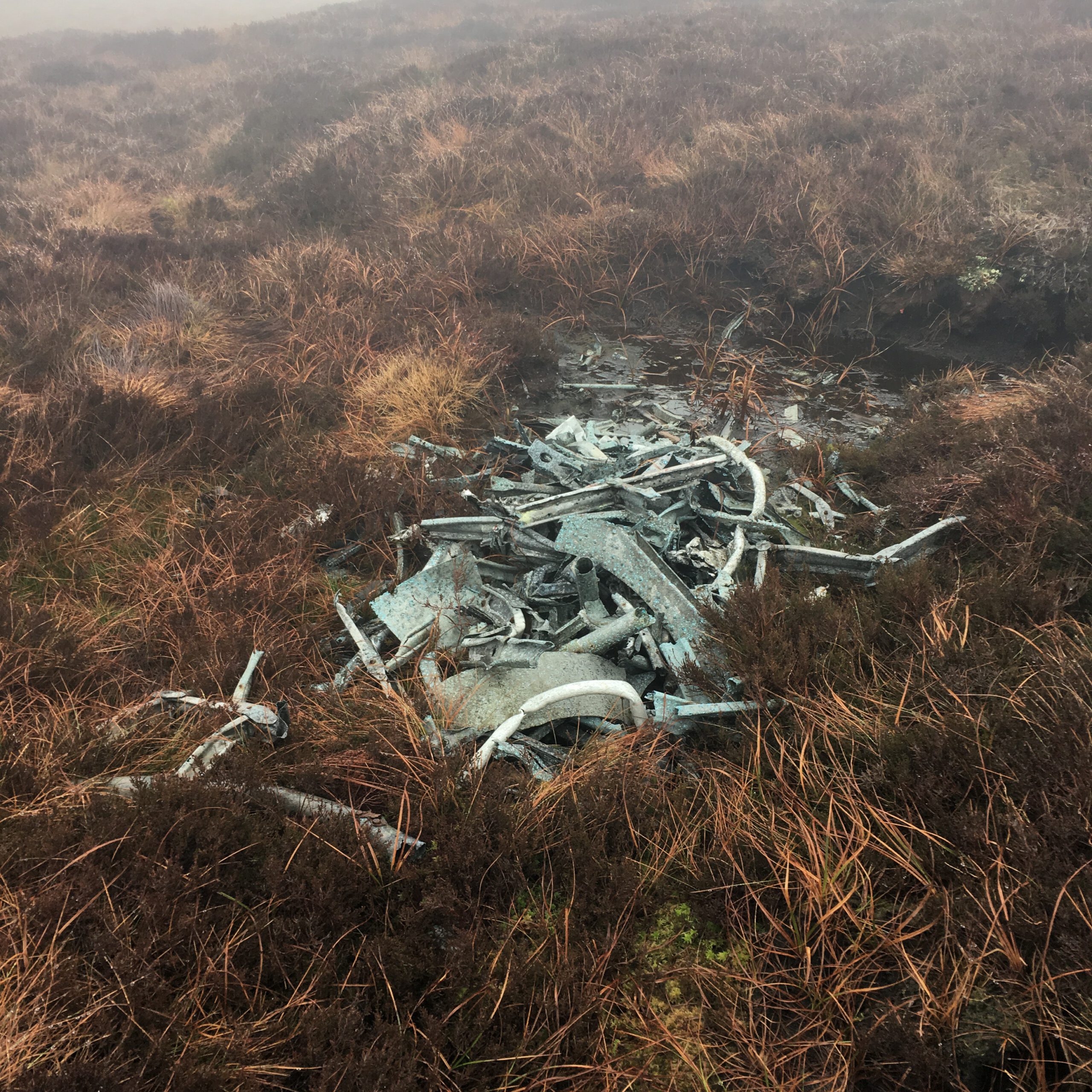 As we progressed across the hill, we came across the wreck of an aeroplane. Around 20 aircraft crashed in the hills between 1938 and 1965, before improved navigational equipment reduced the number of accidents. Some suggest that the geology of the hills had an effect on the navigation equipment and increased the risk of crashing.