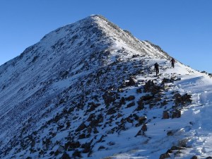 The rest of the hill walk was good fun. We used crampons to ascend the steep bit to the broad ridge of Creise. There was a good amount of ice and frozen turf, and we looked out for short, steep sections to practice front pointing and ‘daggering’ with our ice axes.