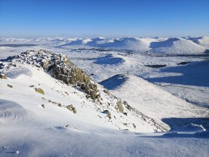 These hills form part of a range of munros known as the Black Mount that in summer can be done together in one big long day, but in winter, two are a reasonable challenge, taking about 7-8 hours. The Black Mount lies to the west of Rannoch Moor, a high plateau of lochs and moorland that during the last ice age held a huge ice sheet, from which ice flowed west to Loch Linnhe and south to Loch Lomond and the Firth of Clyde.
