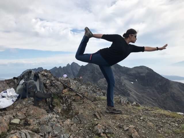 The exposure at the summit of Sgurr a Banachdaich, particularly on the eastern Loch Coruisk side was awesome. This didn’t put Shree off, however, on thi,s her first Scottish Munro. With a good deal of style, she did a difficult one-legged yoga pose called the Standing Bow-pulling pose.