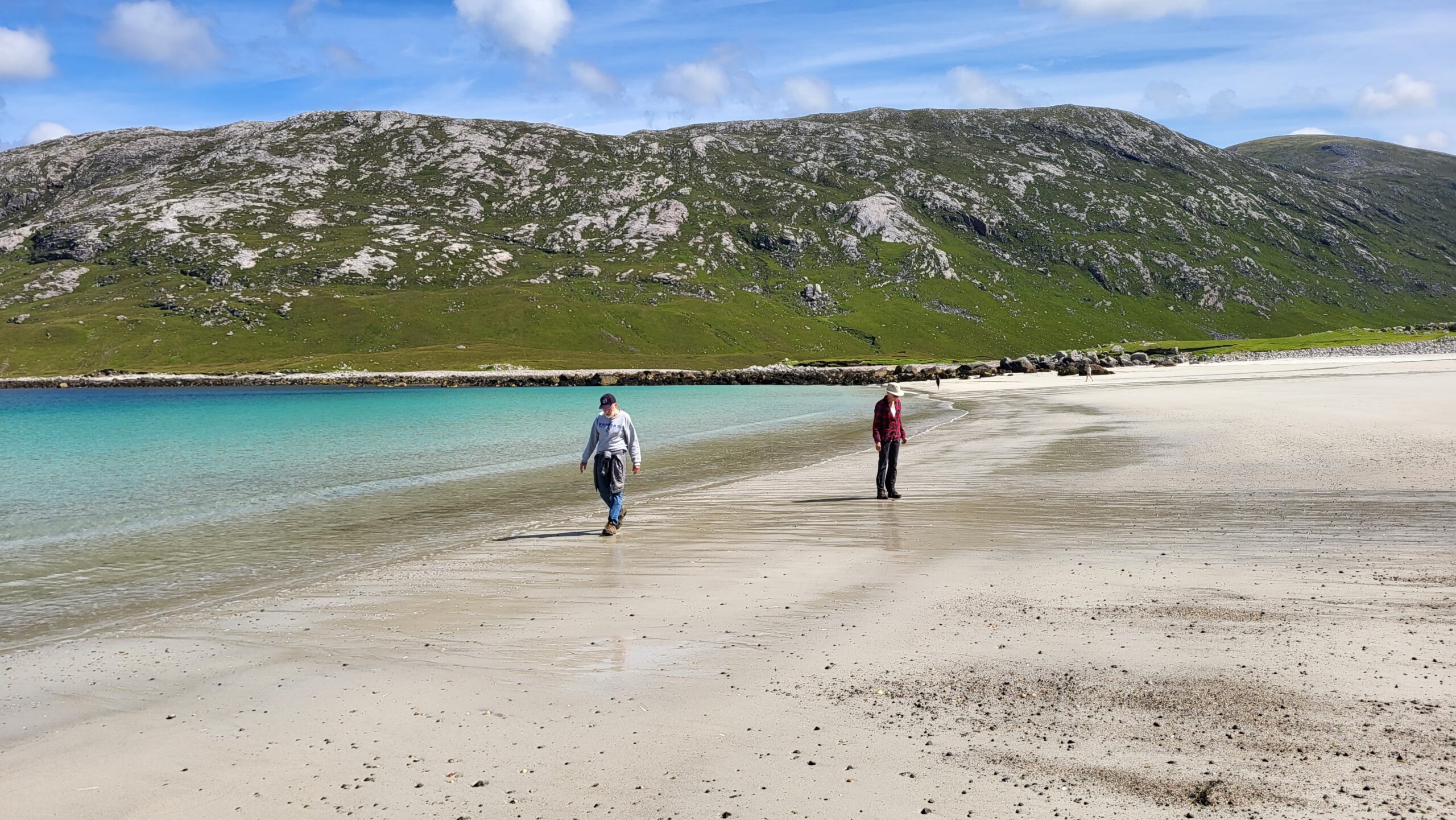 Another world-class beach in Harris is Luskentyre and Seilbost beach. The beaches lie on either side of a river and tidal lagoon, Luskentyre to the north and Seilbost to the south. My picture and video don’t really do them justice. These beaches are seen at their very best at low tide when a large expanse of white sand is exposed and shallow water takes on wonderful turquoise, green and blue hues. Along with the beaches on Berneray, Luskentyre, and Seilbost often come out top on lists of best beaches in Britain.