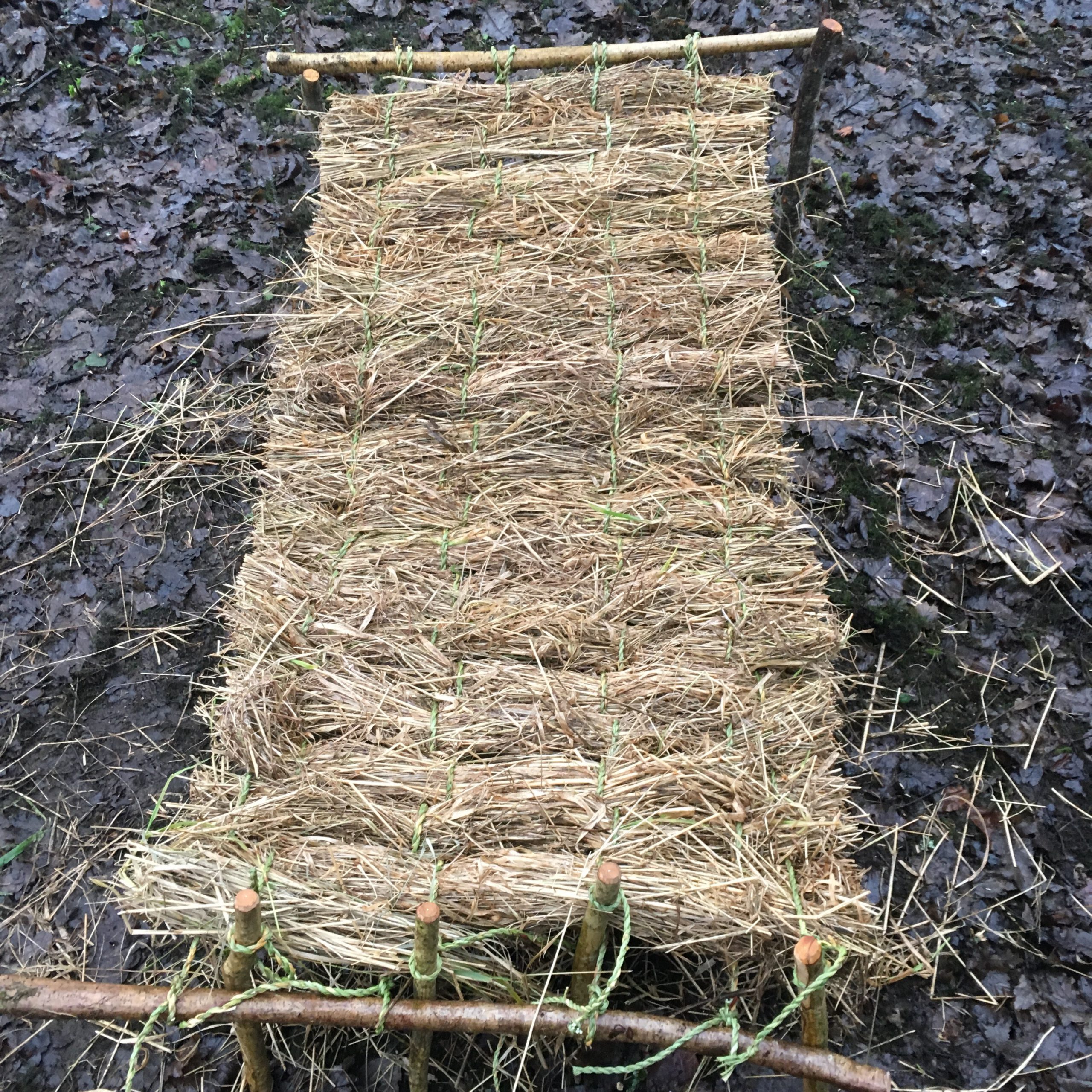 Next, collect some soft rushes, let them dry for a week or more, then weave them into rope (see the Making a Kishie blog for more information on how to do this). You’ll need 4 rope lengths, each 4m long.